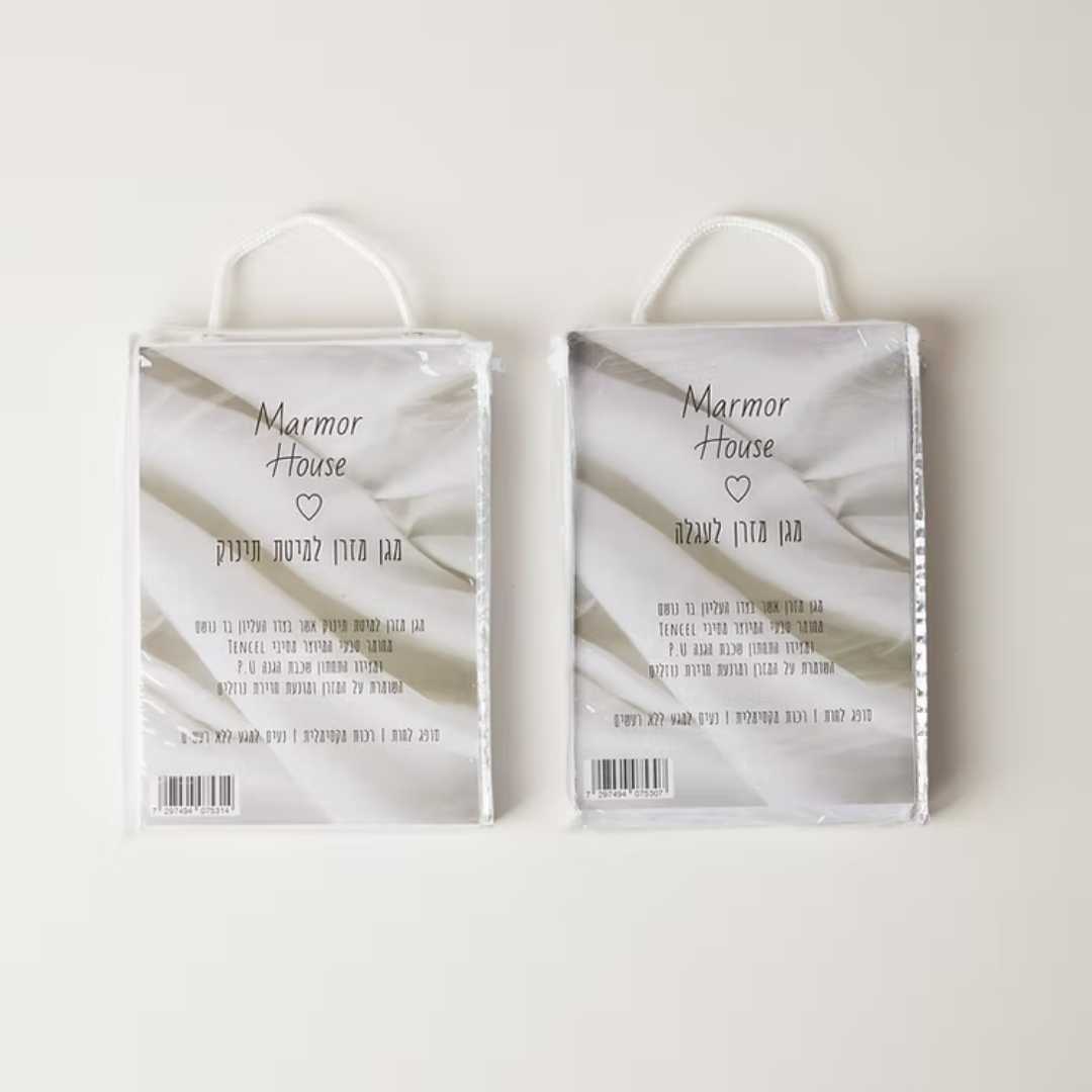 זהו הפתרון המושלם המשלב שני מוצרים חיוניים שיעזרו לכם לשמור על המזרנים של התינוק נקיים, יבשים ומוגנים מפני כל נזקי נוזלים ורטיבות - גם במיטה וגם בעגלה.